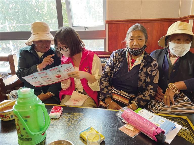 袁正回憶道:“那是一位25歲的姑娘,因身體(ti) 高位截癱向我們(men) 尋求幫助。經過我們(men) 多方籌措爭(zheng) 取到愛心企業(ye) 捐助資金25000元,為(wei) 她解決(jue) 看病就醫的燃眉之急。為(wei) 了增強她對生活的信心,婦聯的工作人員還邀請山南市藏醫院的醫生到她家中做診治,並多次對她進行回訪,為(wei) 她送去生活必需品和醫藥用品。”多次走訪、回訪後,袁正明白深入了解求助者的需求和問題,積極為(wei) 他們(men) 提供幫助和支持,能切實地使一個(ge) 人、一個(ge) 家庭乃至一個(ge) 群體(ti) 得到改變和“重生”。