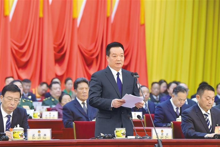 王君正代表中共西藏自治區委員會(hui) 對大會(hui) 的成功召開表示祝賀。他說,會(hui) 議期間,全體(ti) 委員始終以飽滿的政治熱情、強烈的責任感使命感、認真負責的工作態度,聚焦經濟社會(hui) 發展大局,積極建言獻策,廣泛凝聚共識,生動體(ti) 現了人民政協製度的獨特優(you) 勢和社會(hui) 主義(yi) 協商民主的生機活力,充分體(ti) 現了政協委員崇高的使命情懷、良好的精神風貌、強烈的責任擔當。會(hui) 議始終洋溢著民主和諧、團結奮進、求真務實的氛圍,是一次高舉(ju) 旗幟、凝心聚力,開拓進取、鼓舞幹勁,集思廣益、科學決(jue) 策、民主決(jue) 策的大會(hui) ,必將為(wei) 全麵建設社會(hui) 主義(yi) 現代化新西藏匯聚更大力量。
