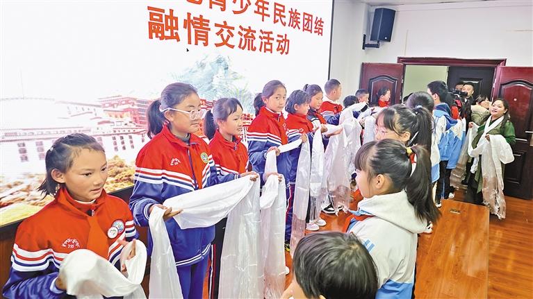 近日,共青團洛紮縣委員會(hui) 組織24名少先隊員前往湖南省邵陽市大祥區華夏方圓學校,與(yu) 該校師生共同開展“手牽手民族團結永不分 心連心同心共築中國夢”民族團結融情交流活動,促進兩(liang) 地青少年交往交流交融,進一步鑄牢中華民族共同體(ti) 意識。