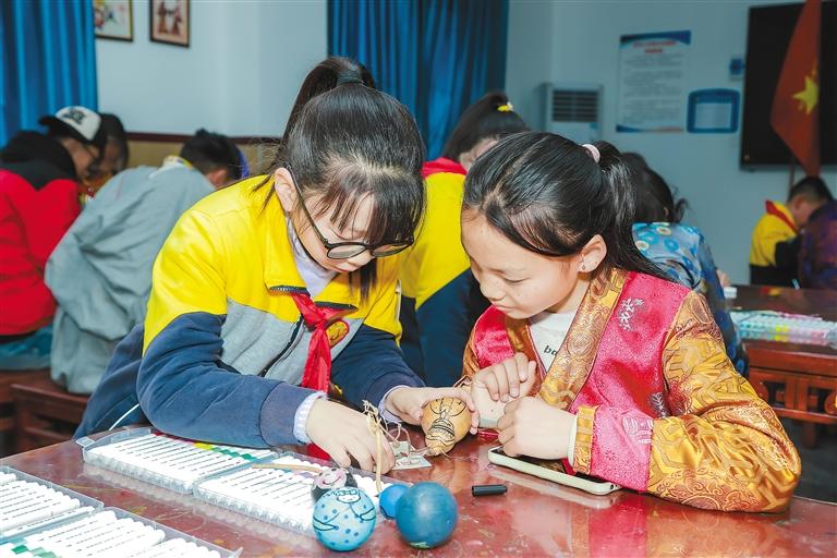 圖為(wei) 山南黃山兩(liang) 地學生在課堂上互動協作,共同完成手工作業(ye) 。記者 武沛濤 攝