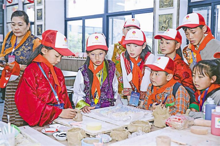 參加冬令營活動的少先隊員正在體(ti) 驗手工製作。記者 謝筱純 王珊 攝