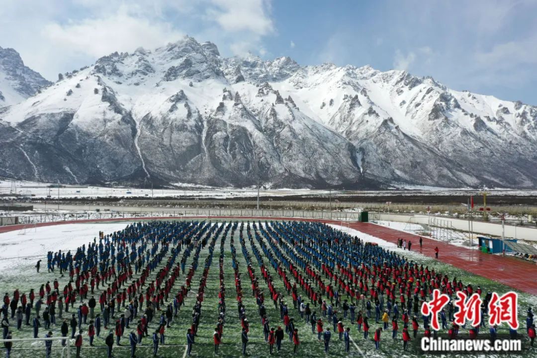 西藏嘉黎縣中學學生在操場做操。貢嘎來鬆 攝
