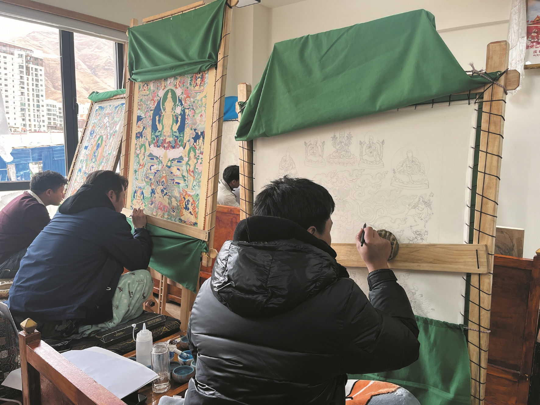 圖為(wei) 學生們(men) 正在畫唐卡。拉薩融媒記者 莫瑞英攝