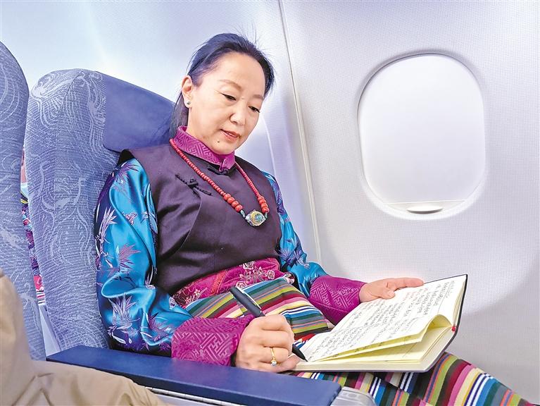 圖為(wei) 第十四屆全國人大代表尼瑪在整理履職工作筆記。記者 索朗群培 攝