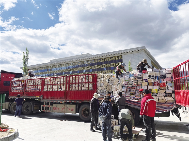 工作人員正在搬運圖書(shu) 。拉薩市圖書(shu) 館供圖