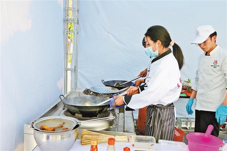 圖為(wei) 阿裏地區中等職業(ye) 技術學校學生在展示廚藝。記者 武沛濤 攝