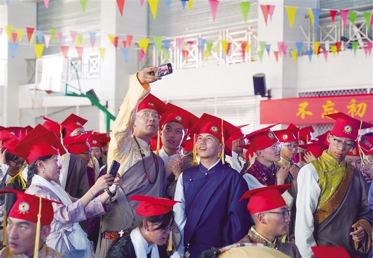 5月29日下午,拉薩市第四高級中學舉(ju) 行2024屆高三年級成人禮暨畢業(ye) 典禮。750餘(yu) 名學生身著盛裝,頭戴紅色成人禮帽,與(yu) 老師、家長共赴這場華麗(li) 璀璨的青春盛宴。