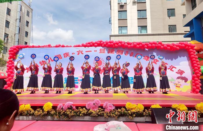 圖為(wei) 拉薩市堆龍德慶區小太陽幼兒(er) 園的孩子們(men) 表演民族舞。宋建英 攝