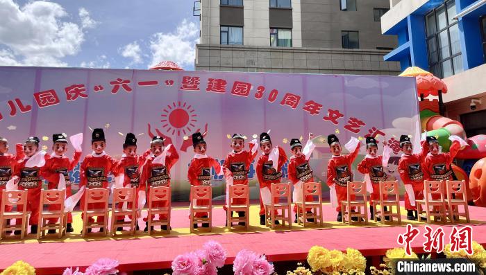 圖為(wei) 拉薩市堆龍德慶區小太陽幼兒(er) 園能歌善舞的孩子們(men) 表演節目。宋建英 攝