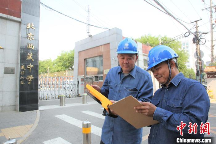 國網北京朝陽供電公司員工在北京西藏中學開展高考保電工作。翟磊 攝