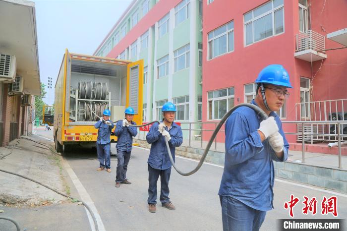國網北京門頭溝供電公司員工在門頭溝區大峪中學高考考點開展發電車接入工作。李曉晗 攝