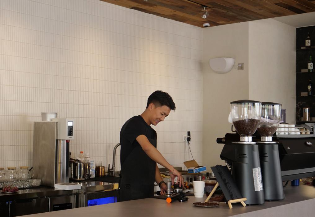 拉巴旦增在店內(nei) 製作咖啡。(卓瑪 攝)