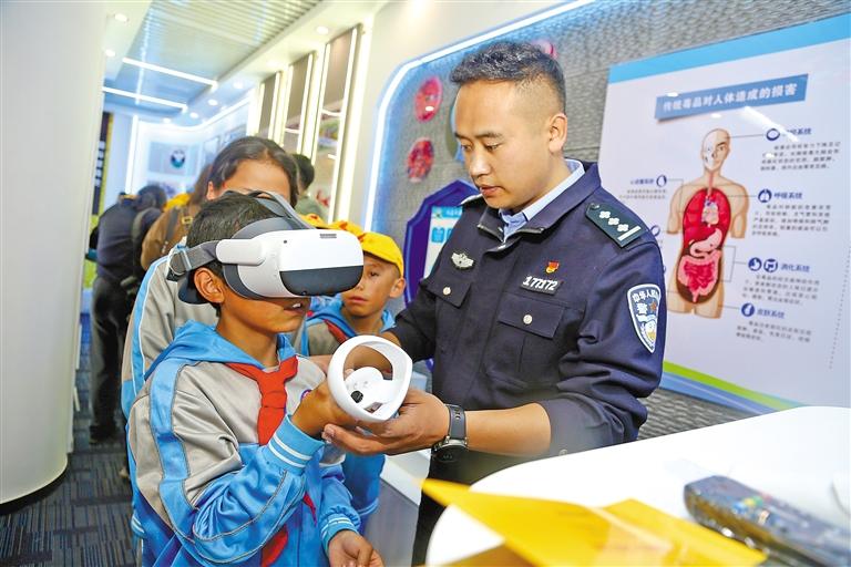 “今天參觀墨竹工卡縣公安局禁毒警示教育基地後,看到了許多吸毒之前和之後的人臉、人體(ti) 器官等區別,還知道了許多新型毒品,我會(hui) 勸告大家遠離毒品,珍惜生命。”甲瑪鄉(xiang) 中心小學五年級二班學生次仁曲珍告訴記者。基地內(nei) 豐(feng) 富的圖文資料讓青少年學生在參觀過程中可以充分了解我國的禁毒曆史、禁毒法律法規,讓廣大青少年學生切實感受到濫用毒品帶來的嚴(yan) 重危害,牢固樹立“不想吸、不敢吸、吸不得”的心理防線。“今天是國際禁毒日,墨竹工卡縣公安局禁毒大隊以此為(wei) 契機,聯合甲瑪鄉(xiang) 派出所、鄉(xiang) 中心小學組織學生參觀墨竹工卡縣公安局禁毒警示教育基地,旨在讓我們(men) 一起行動,提高全民識毒、防毒、拒毒能力、對毒品說不。此次禁毒宣傳(chuan) 受到學校師生的熱情支持,營造了安全和諧的校園氛圍,齊心築牢禁毒防火牆。”墨竹工卡縣公安局禁毒大隊民警仁增多吉說。