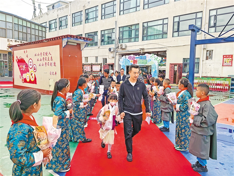 圖為(wei) 8月12日,拉薩市第三小學精心準備,用滿滿的儀(yi) 式感歡迎新入學的一年級學生。胡舟 記者 次仁平措 攝