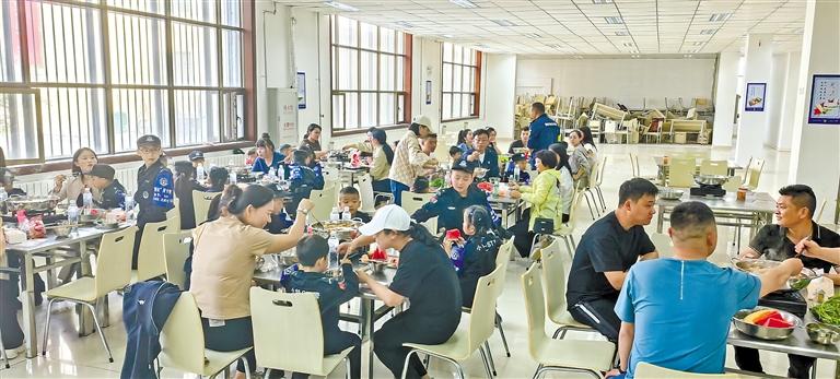 圖為(wei) 警屬和警娃們(men) 在阿裏地區公安處特警支隊食堂吃飯。