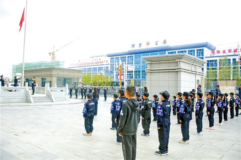圖為(wei) 警娃們(men) 在阿裏地區公安處參加升國旗儀(yi) 式。