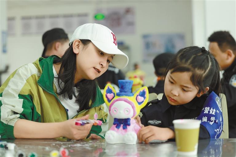 圖為(wei) 在親(qin) 子互動環節,警娃和她的母親(qin) 在用心塗畫石膏玩偶。通訊員 魏東(dong) 升 攝