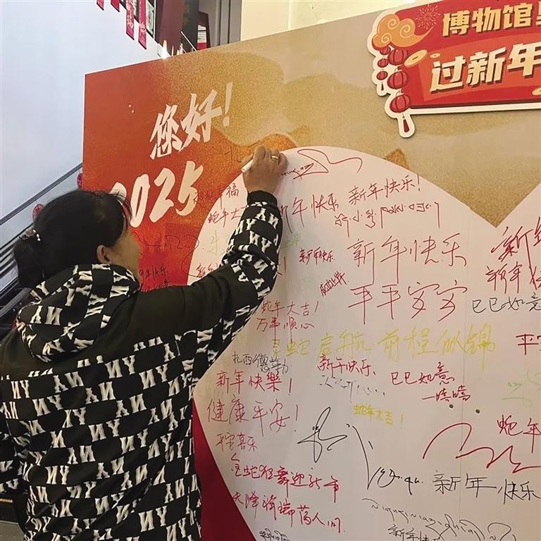 活動期間,博物館大廳的新年願望牆備受歡迎,成為(wei) 觀眾(zhong) 們(men) 的熱門打卡點。人們(men) 紛紛在心願貼上寫(xie) 下對新年的美好期許,隨後領取博物館精心準備的節日紀念品。同時,博物館推出的集卡集章活動也吸引了眾(zhong) 多參與(yu) 者。觀眾(zhong) 們(men) 通過參與(yu) 館內(nei) 各項活動收集紀念章,就有機會(hui) 在年末收獲博物館準備的神秘大獎,這一活動極大地激發了大家的參與(yu) 熱情。