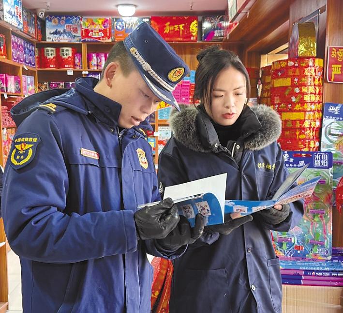 拉薩市消防救援支隊宣傳(chuan) 員走進煙花爆竹經銷點,為(wei) 店員科普易燃易爆場所消防安全知識。 通訊員 肖暄 攝