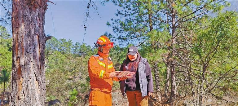 林芝市察隅縣消防救援大隊宣傳(chuan) 員走進旅遊景區,為(wei) 遊客科普林區防火常識。 通訊員 肖暄 攝