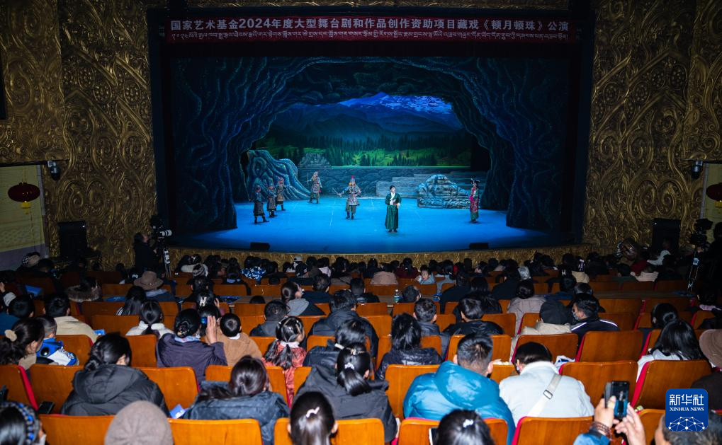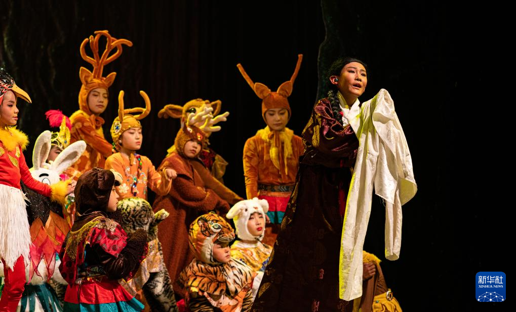 西藏首部少兒(er) 舞台劇藏戲《頓月頓珠》演出現場(2月11日攝)。新華社記者 丁增尼達 攝