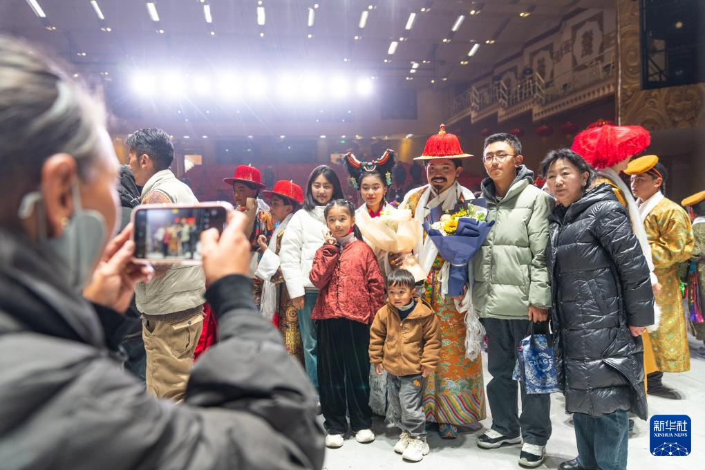 演出結束後小演員們(men) 與(yu) 家人合影留念(2月11日攝)。新華社記者 丁增尼達 攝