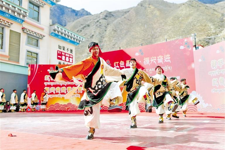 圖為(wei) 鍋莊舞比賽現場。本報記者 索朗旺久 攝