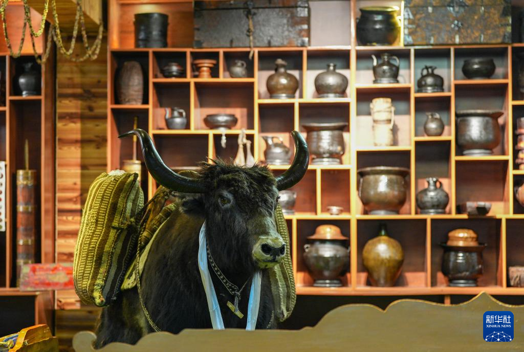 茶館主人珠珠將藏式茶館與(yu) 民俗陳列方式相結合,讓顧客在品嚐美食的同時,沉浸式體(ti) 驗民俗文化。茶館四周和過道上擺滿700餘(yu) 種3000多件西藏民俗物件,有給牛犢喂奶的牛角奶瓶、火柴盒大小的便攜酥油盒、防沙塵和雪盲的犛牛毛墨鏡等。牧民生產(chan) 生活用具幾乎都能在這裏找到,獨具風格的茶館儼(yan) 然成為(wei) 一座藏北遊牧文化“博物館”。