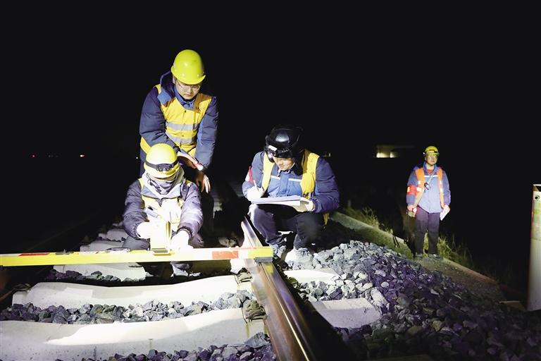 “激光測量儀(yi) 一定要在軌麵上放平放正,並且鎖好安全扣,這樣測出來的數據才精準。”2月17日,夜幕籠罩下的拉林鐵路一片寂靜。22時許,中國鐵路青藏集團有限公司拉薩基礎設施段山南綜合維修車間桑日綜合維修工區的供電專(zhuan) 業(ye) 工長董凡,在工作開始前反複叮囑著同事。當天,他們(men) 計劃對拉林鐵路山南站至桑日站區間231號至318號支柱間的接觸網設備限界,展開全麵測量與(yu) 檢查。