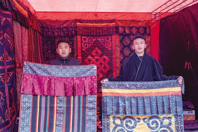 “阿佳,這個(ge) 門簾質量超棒,您瞧瞧。”“這款門簾不僅(jin) 樣式精美,材質還特別厚實,冬天掛門上保暖效果可好啦。”2月10日,堆龍德慶區第三屆“上穀福地·吉慶年貨集市”熱鬧開市,市民們(men) 在攤位間穿梭,挑選心儀(yi) 的商品,現場人頭攢動、熱鬧非凡。在市集的一側(ce) ,格桑平措正熱情地向顧客介紹攤位上的藏式門簾。他的熱情極具感染力,不少市民被打動,很快就選到滿意的門簾,滿臉笑容地離開攤位。格桑平措告訴記者:“這是我們(men) 首次參加年貨節,帶來的都是店裏銷量最好的產(chan) 品。藏曆新年快到了,我們(men) 希望把最優(you) 質的產(chan) 品推薦給大家,為(wei) 顧客的家增添濃濃的年味。”