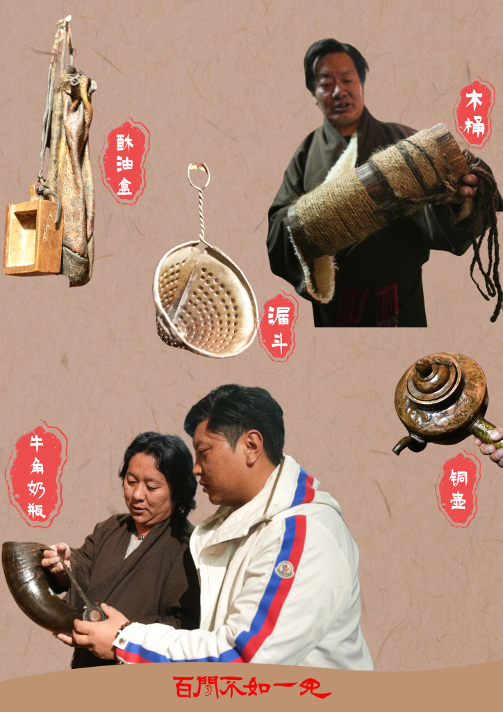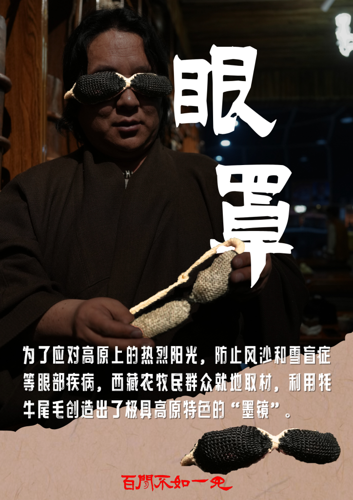 犛牛毛“墨鏡”、牛皮茶包、便攜酥油盒、給牛犢喂奶的牛角奶瓶……