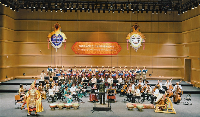 2月24日至25日,西藏自治區藏劇團與(yu) 自治區歌舞團聯袂獻上西藏自治區2025年新年戲曲音樂(le) 會(hui) 。音樂(le) 會(hui) 由開場《紮西德勒》和尾聲《吉祥如意》以及《萬(wan) 千思緒》《古韻新聲》《永續輝煌》三個(ge) 篇章組成,包含十餘(yu) 個(ge) 新創與(yu) 經典節目,為(wei) 觀眾(zhong) 呈現了一場視覺與(yu) 聽覺的盛宴。