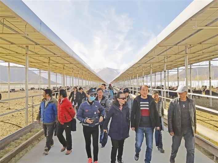 在西藏泰成乳業(ye) 有限公司牛羊育肥基地觀摩學習(xi) 。記者 王菲 攝