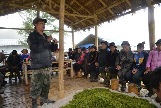雨越下越大,格桑把村民們(men) 叫到茶葉基地旁邊的茅草屋避雨,借此機會(hui) ,他又用門巴語講解了民族團結、掃黑除惡、醫療報銷等方麵的內(nei) 容,這中間還穿插一些漢語的講解。
