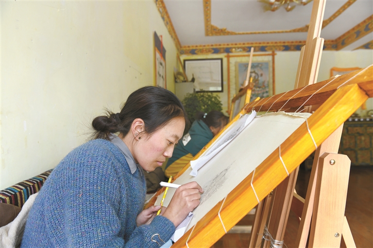 據了解,西藏雪堆白傳統手工藝術學校的學生中,有不少是貧困農牧民子女或殘疾人士等。畢業的學生或留校任教,或獨立創作,靠雙手脫貧增收致富。[詳細]
