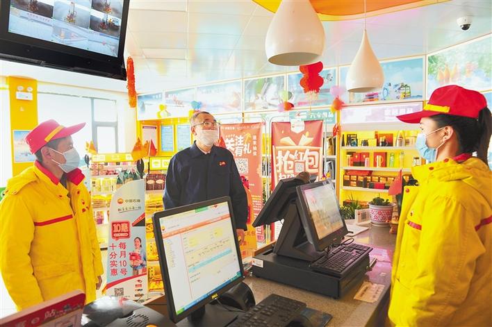 圖為(wei) 葛立均(中)在考察中石油阿裏銷售分公司加油站過程中走訪慰問幹部職工。 記者 溫凱 洛桑旦增 攝