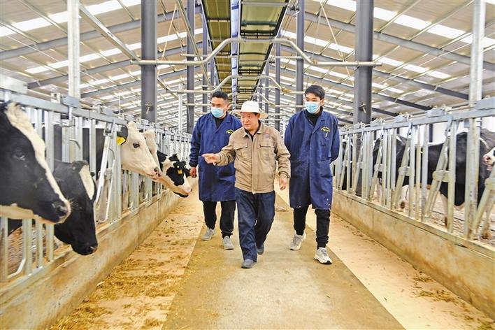 圖為(wei) 近日,達孜區高標準良種奶牛養(yang) 殖示範中心畜牧獸(shou) 醫薑玉亮帶領新員工巡檢牛場。記者 李洲 攝