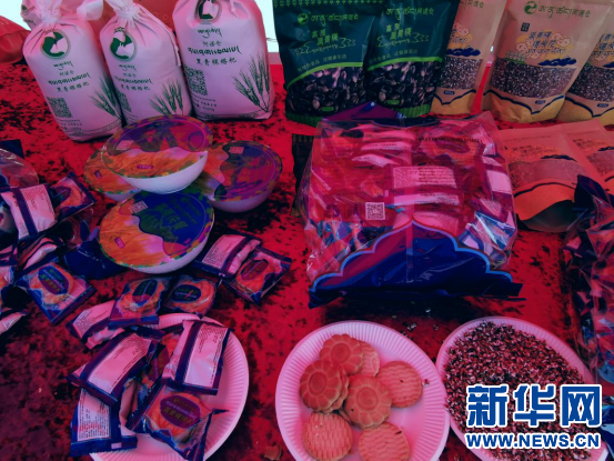 “我現在手裏拿的是縣裏的特產(chan) 黑青稞餅幹。這種餅幹是用黑青稞和蜂蜜製作的,老少皆宜,歡迎大家前來品嚐。這一大包才65元錢,可以掃描二維碼、打電話訂購。”