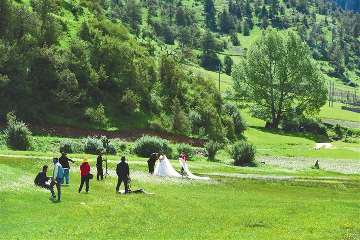 圖為(wei) 一對新人在伊日峽穀拍攝婚紗照。記者 紮巴旺青 攝