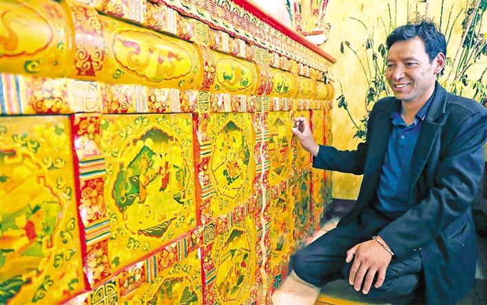 米瑪繪製的藏式家具。記者 劉斯宇 格桑倫(lun) 珠 攝