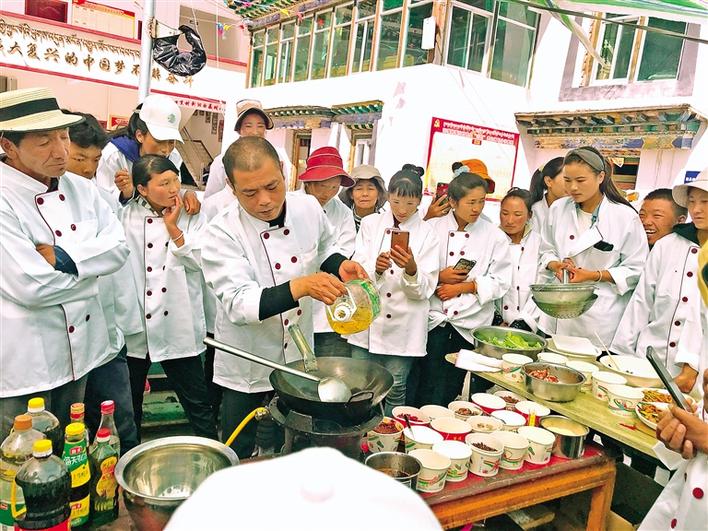 為(wei) 幫助農(nong) 牧民群眾(zhong) 實現轉移就業(ye) ,近日,西藏林芝市朗縣舉(ju) 辦中式烹調師技能培訓班,50餘(yu) 名農(nong) 牧民群眾(zhong) 參加培訓。授課老師向學員傳(chuan) 授了中式家常菜肴的烹飪方法,並對基本刀工、食材的選用、調料的搭配、火候的掌握等作了詳細的介紹。