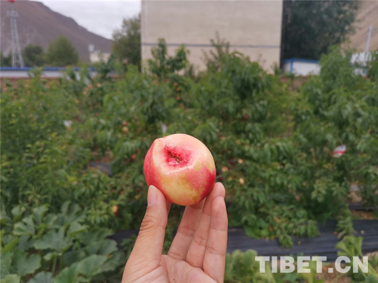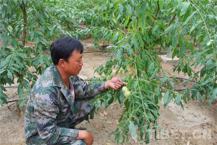 “這個(ge) 看著不大,但是極甜,汁水很足。”身著一身迷彩工作服的尼木縣卡如鄉(xiang) 黨(dang) 委委員王榮華隨手摘下一隻桃子給記者品嚐,並告知“放心吃,都是有機種植的。”一口咬下,口感果然相當好。