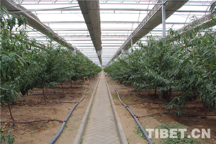 在高原上栽好一棵桃樹需要傾(qing) 注更多的心血。經過大棚的中控室,王榮華說:“這裏晝夜溫差大、紫外線強,冬天的時候還要澆凍水、拉膜蓋土、給樹打防凍液,在高原發展果樹種植困難不少。不同於(yu) 內(nei) 地的桃樹,在這裏快4年了,露天的桃樹隻長高兩(liang) 三米。”說到這裏,他不由感慨科技種植的力量:“大棚裏的桃樹一年就長到3米多高,並且掛果了。回想2017年時,露天種下的桃樹隻有手指粗細,如今長勢這麽(me) 好,真有點不可思議。”