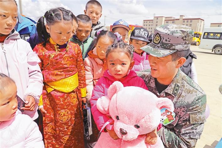 西藏那曲軍分區官兵在給孤兒院的孩子們送禮物