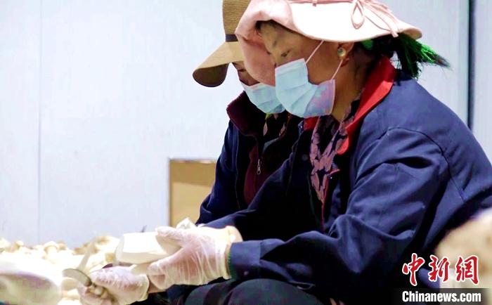 圖為(wei) 11月17日,西藏日喀則市謝通門縣農(nong) 牧民在該縣一生物科技企業(ye) 清理食用菌。中新社記者 貢桑拉姆 攝