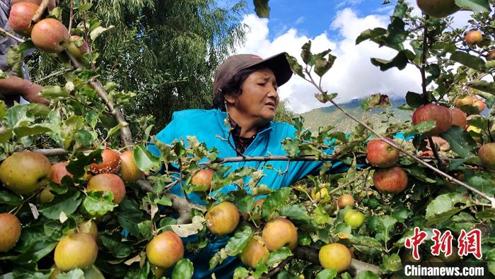圖為(wei) 10月6日,西藏林芝市米林縣參與(yu) 種植蘋果的農(nong) 民采摘蘋果。中新社記者 貢桑拉姆 攝