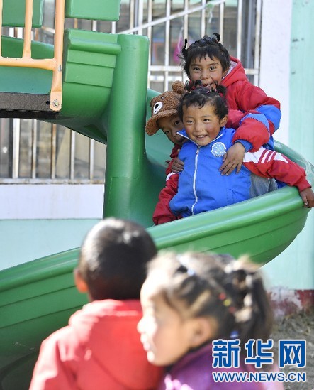 西藏山南市貢嘎縣吉雄鎮紅星社區雙語幼兒(er) 園裏的孩子們(men) 在玩耍(11月25日攝)。新華社記者 張汝鋒 攝
