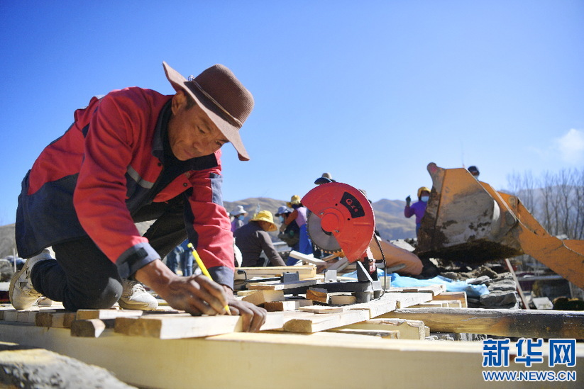 村民普布卓瑪家正在翻修舊房子。十幾個(ge) 工人分工協作,分別承擔了切割木板、澆水泥、砌磚牆等工作,施工現場熱火朝天,井然有序。普布卓瑪說:“這幾年收入多了,生活好了,就想著把房子再翻修一下。”