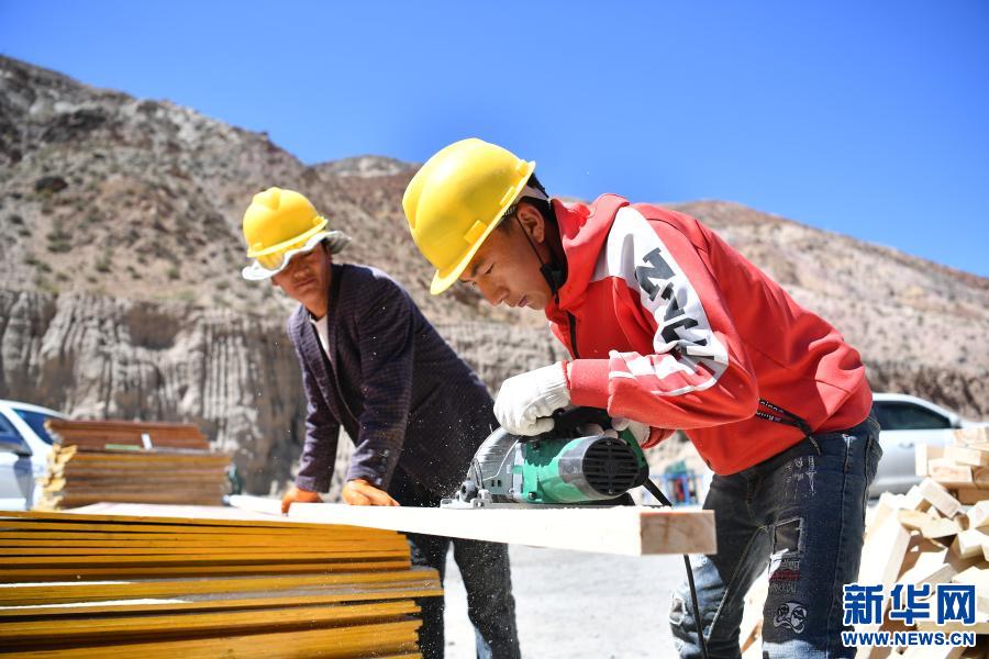 西藏昌都市八宿縣吉達鄉(xiang) 仲沙村村民平措,在八宿縣西巴易地扶貧搬遷安置點的工地上勞作(5月10日攝)。2019年,平措和家人搬遷到西巴易地扶貧搬遷安置點,住進了75平方米的新居。平措還在安置點找到了一份建築工的工作,每個(ge) 月有4000多元的收入。新華社記者 詹彥 攝