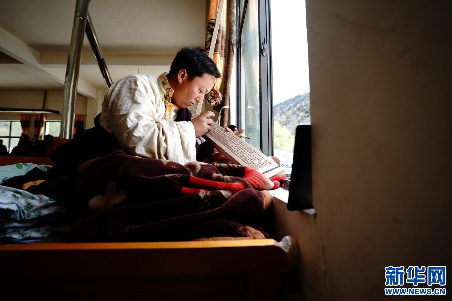 在西藏昌都市江達縣波羅鄉(xiang) 木鬆民族手工藝有限責任公司,波羅鄉(xiang) 村民白瑪加村在製作木刻(5月1日攝)。白瑪加村2017年開始學習(xi) 波羅木刻,如今已經出師,成為(wei) 一個(ge) 熟練的木刻藝人,一個(ge) 月能製作6塊木刻作品,每個(ge) 月有4000多元的收入。新華社記者 詹彥 攝